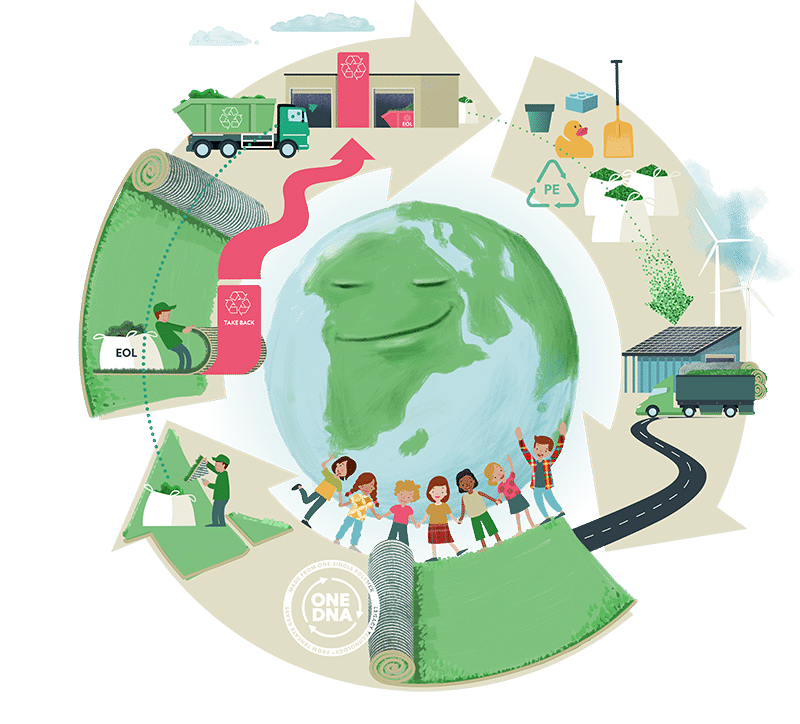 We maakten de stap naar volledig circulair kunstgras: ONE-DNA™, rechtstreeks uit de fabriek in Portugal. Jasper Eppingbroek pakte als fieldmanager de verantwoordelijkheid om dit in Nederland groot te maken. Eén grondstof, eindeloos herbruikbaar — een gamechanger voor duurzame speelvelden.